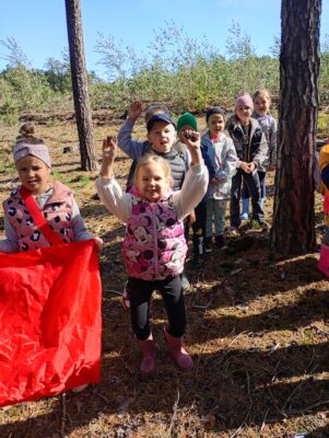Kolejnym punktem programu był spacer edukacyjny po lesie. Podczas wędrówki dzieci poznawały tajemnice przyrody, uczyły się rozpoznawać rośliny oraz dowiadywały się, jak ważne jest dbanie o środowisko.