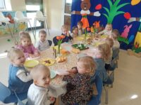 W naszym żłobku zapanowała prawdziwie świąteczna atmosfera.Z okazji świąt wielkanocnych dzieci uczestniczyły w wyjątkowym wydarzeniu-odwiedzinach zajączka oraz śniadanku wielkanocnym.Już od samego rana maluchy z radością wypatrywały niezywkłego gościa,który sprawił dzieciom ogromną niespodziankę,zostawiając dla nich kolorowe koszyczki pełne niespodzianek.Następnie odbyło się wspólne śniadanko wielkanocne.Przy pięknie udekorowanym stole mogliśmy wspólnie spędzić chwile oraz poczuć zbliżające się święta wielkanocne.
