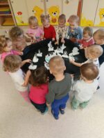 Namiastkę zimy stworzyły dzieci bawiąc się szcztucznym śniegiem.Malutkie rączki lepiły,kulały śnieżki i eksperymentowały z materiałami o różnej konsystencji.Zabawy sensoryczne stymulują rozwó zmyslów,wplywają na umiejętności motoryczne.Wspierają rozwój poznawczy,ale przedewszystkim to wspaniała zabawa i radość dzieci.