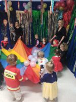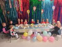 Bal karnawałowy w żłobku to jedno z najbardziej wyczekiwanych i radosnych wydarzeń w roku.Tego dnia sala zmienia się w kolorową bajkowa krainę pełną balonów,serpentyn i migoczących dekoracji.Tak też było i u nas….Tego dnia już od rana w żłobku pojawiły się kolorowe postacie.Dzieci przebrane były w bohaterów znanych bajek.Wystrój sali wprowadził w radosny nastrój i zachęcał wszystkich do wesołej zabawy.Dzieci świetnie się bawiły,były tańce i zabawy,a w przerwie smaczny poczęstunek.Wspólna zabawa przyniosła wiele zabawy naszym dzieciom.
